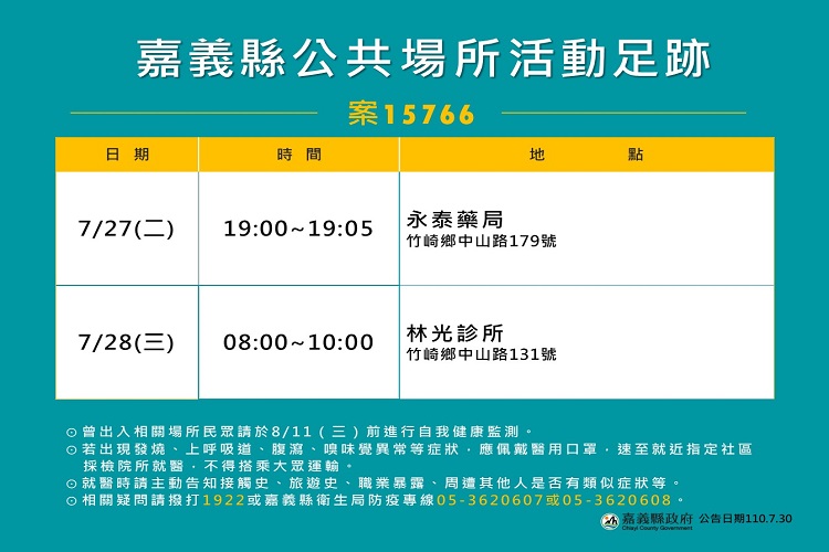 嘉義縣確診公共場所活動足跡