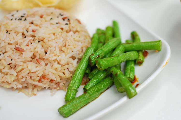 •午餐:五穀飯+毛豆炒雞絲+炒菠菜+紅豆湯(含鎂+鉀+纖維)
