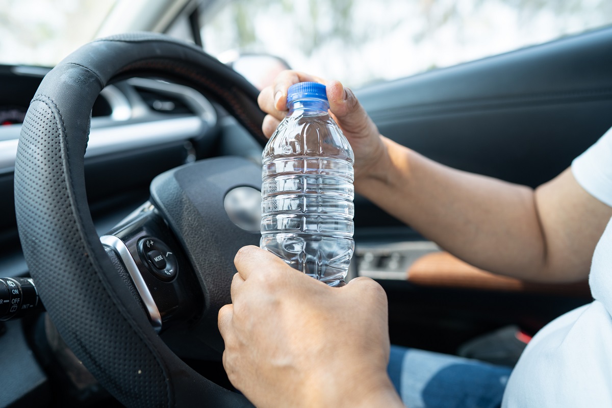 1、別把瓶裝水留在車裡:車內溫度可飆破60°C