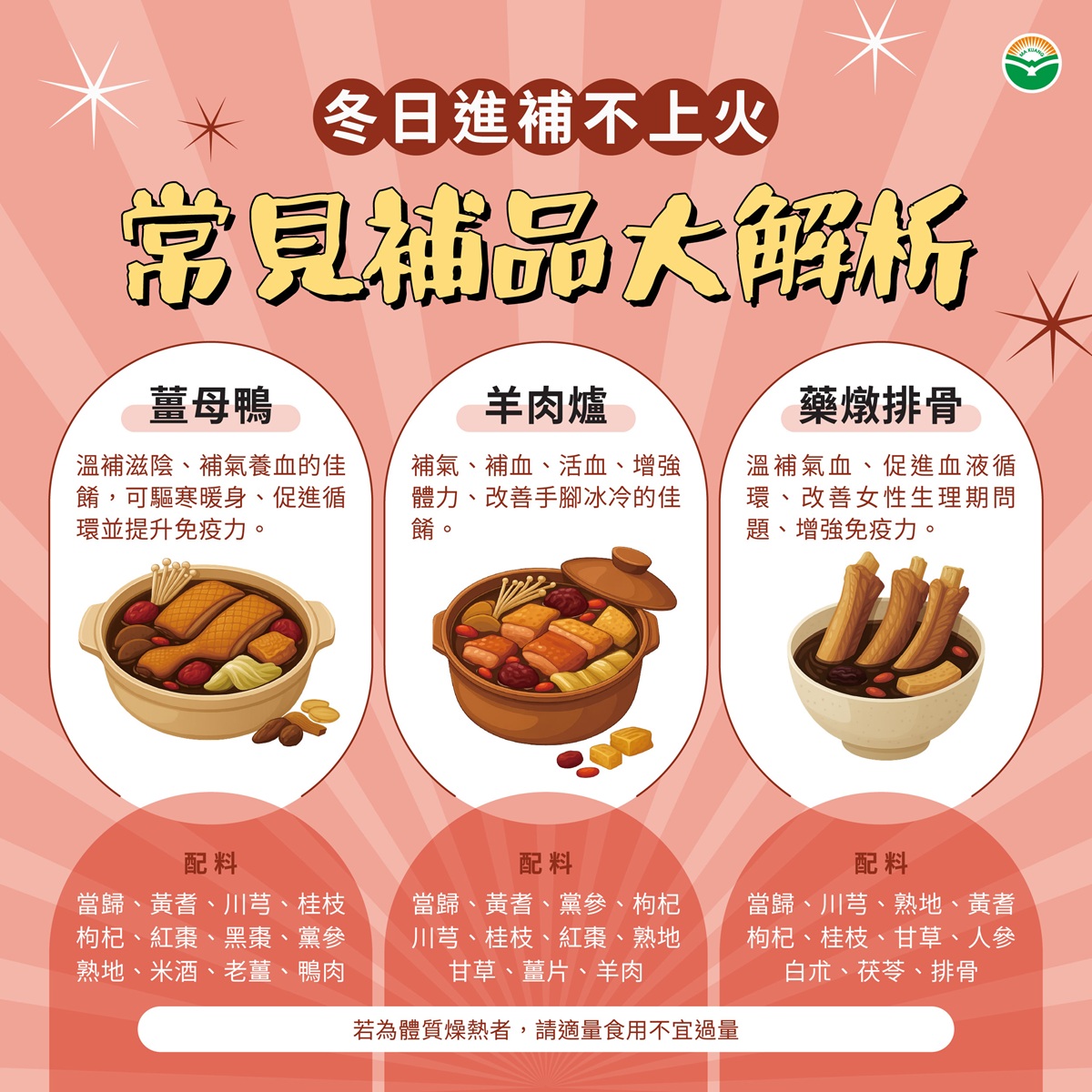 三大冬日補品解析:補什麼?誰適合?