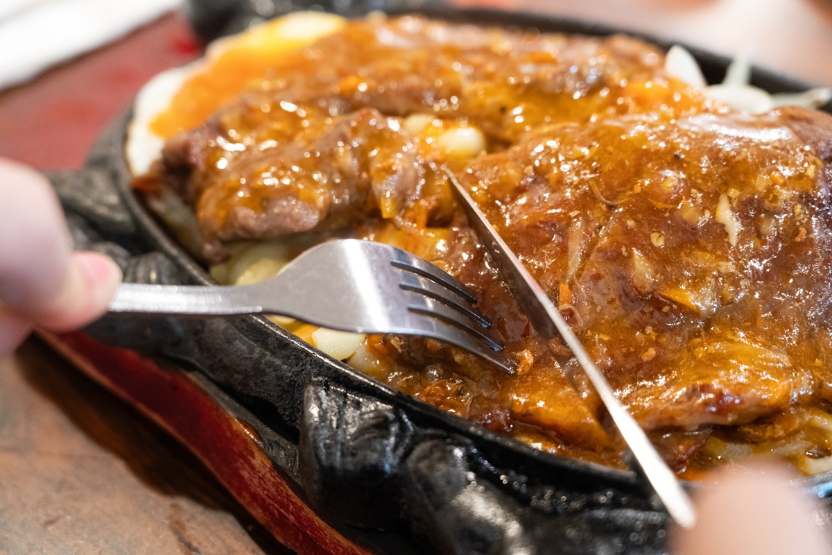 夜市裡的牛排被油煎的吱吱作響,一客牛排100多塊就可以飽餐一頓,但是,成本考量的關係,這些肉大多是重組肉,顧名思義,就是切肉時,有很多不成型的的小碎肉,經過重絞,再添加黏著劑塑型冷凍,就成了我們常見到的便宜肉品重組肉,只不過這當中添加的黏著劑,傳聞可能會致癌?