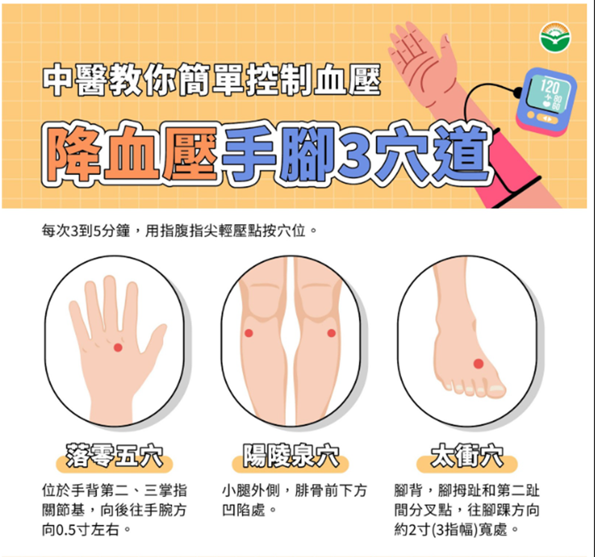 按壓穴位助降壓 促進氣血往下行