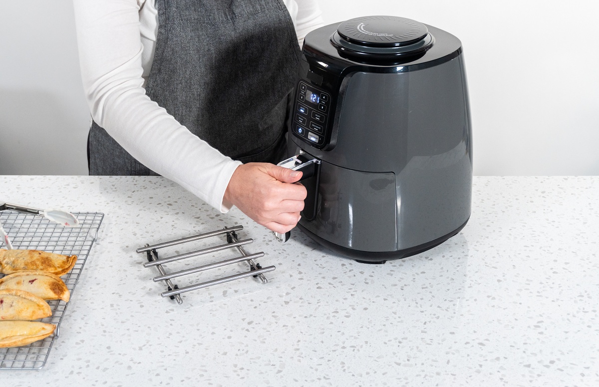 氣炸鍋利用熱風扇高速旋轉,產生強大的熱空氣對流,使食物受熱。蔡正亮指出,氣炸鍋可在十幾秒內迅速升溫至180度以上,這樣的「瞬間高溫」正是潛在的健康風險來源。