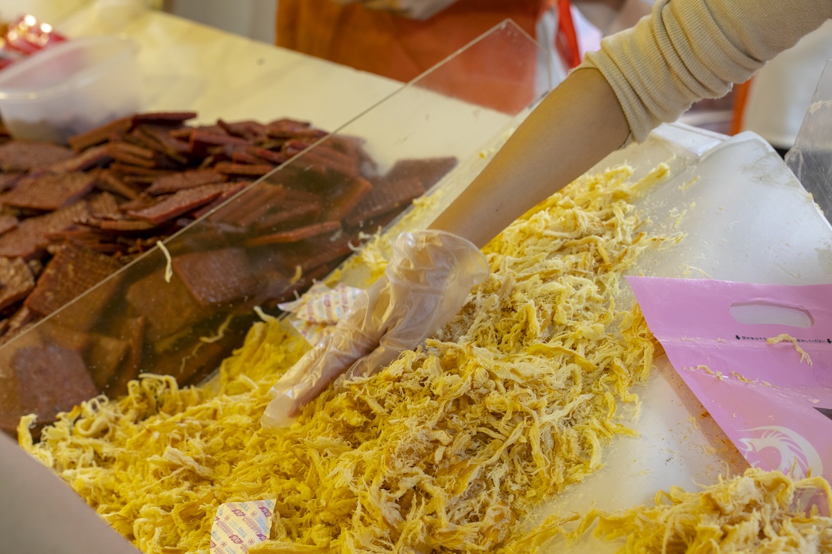 高敏敏表示,一顆發糕大約200g,熱量就要x2,相當於四百多大卡,當天要少吃一碗飯;其它像是鱈魚絲、豬肉絲、魷魚絲100g就大約是一碗的份量,不得不說 隱藏的鈉含量可怕,這種肉類、海產類的加工乾貨,都會在加工過程中加入大量糖、鹽、油調味,只要100公克的乾貨,可能就比一天能吃的鹽分還更高,真的是高血壓的隱形殺手!