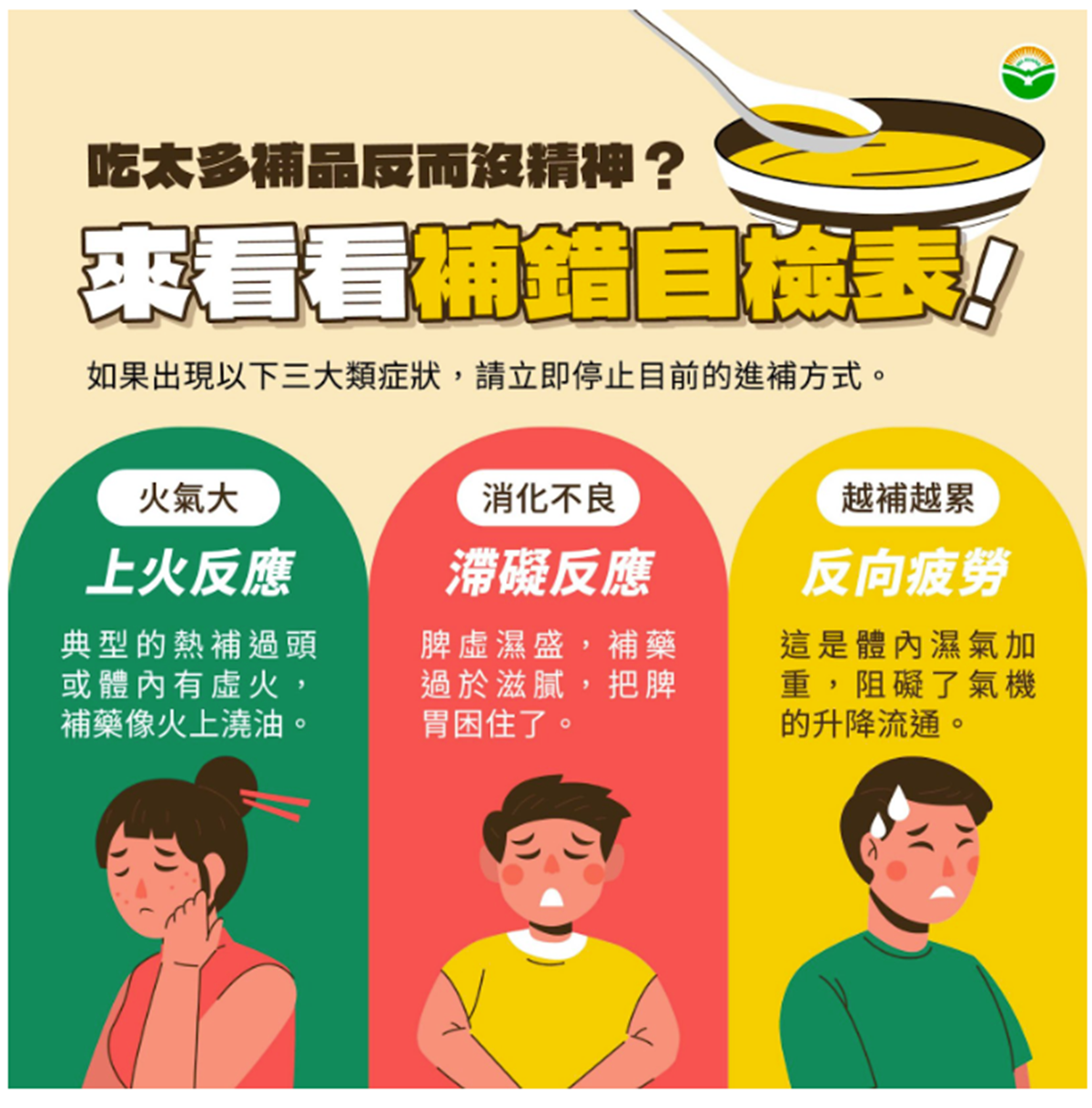 「醫生,我吃了人參、枸杞、當歸,還有各種滴雞精,精神卻沒有變好,反而覺得更累,嘴巴還破皮,甚至睡不好,這是不是補錯了?」這是許多患者在診間常說的一句話。
