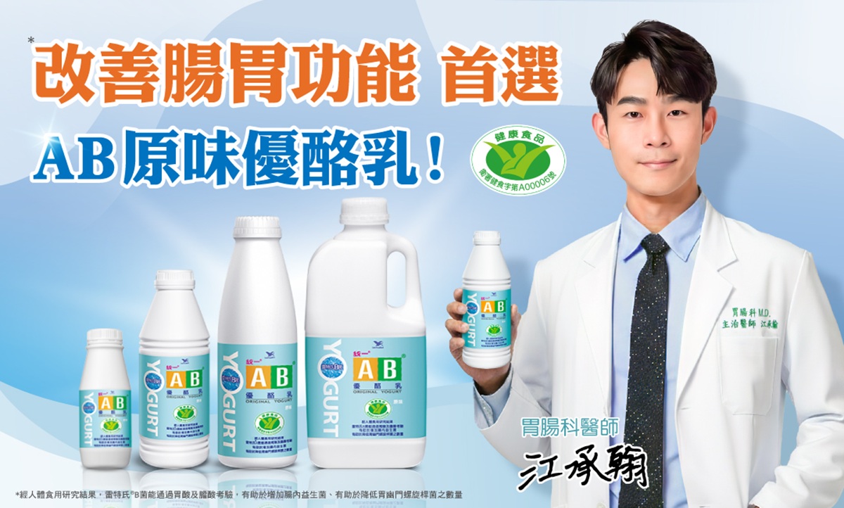 以統一AB原味優酪乳為例,若同時具備「腸胃雙效」健食標章,代表其功效不僅著重於保腸,亦涵蓋胃部健康的維持。其中,AB原味優酪乳含有雷特氏B菌,經過人體食用研究結果,有助於降低胃幽門螺旋桿菌之數量。