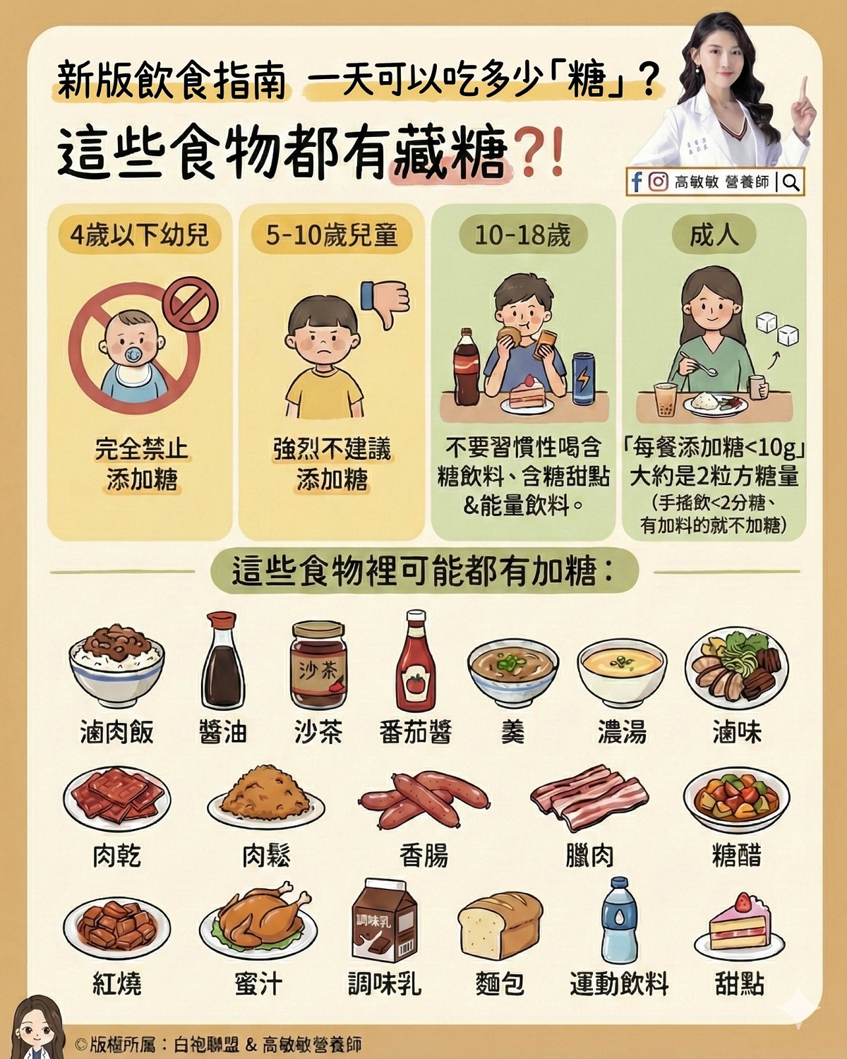 這些食物不是不能吃,而是要知道來源與頻率怎麼安排,高敏敏強調,選擇成分單純、減少加工,就是幫身體少一點負擔!糖吃多了,身體真的會記帳,長期下來和肥胖、脂肪肝、代謝問題都有關,從少糖、減糖開始,就是最溫柔的健康管理!