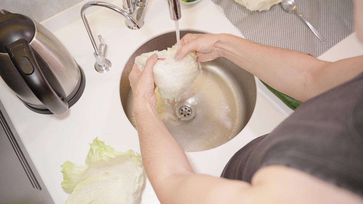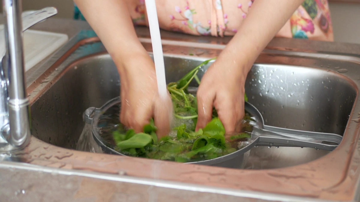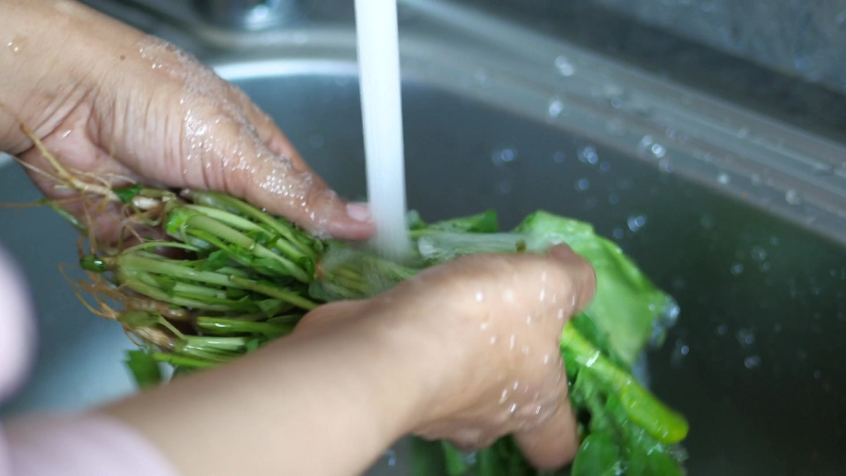 STEP 2、沖洗 (Rinse) :用細小的流動清水沖洗蔬菜