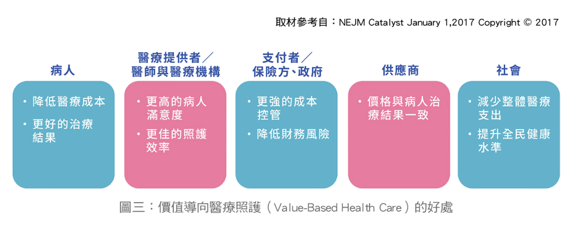 台灣在全民健保下具備高可近性與相對完整的醫療資料,但也容易形成「以量計酬」的慣性。相關研究資料指出,價值導向照護的興起與支付改革、責任照護組織(Accountable Care Organizations, ACO)、綑綁支付(Bundled payment)等制度設計有密切相關;其目的不只在於降低再入院或短期成本,而是促進更好的健康、較低的花費,以及更高品質的照護。