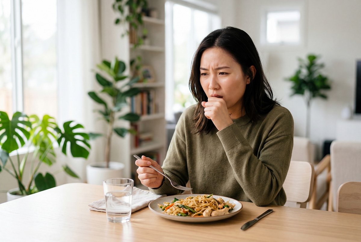 胃酸往上刺激食道和喉嚨,有些人不會覺得火燒心,卻一直咳。常見在飯後、躺下或半夜特別明顯。咳嗽找不到原因時,逆流一定要列入考慮。