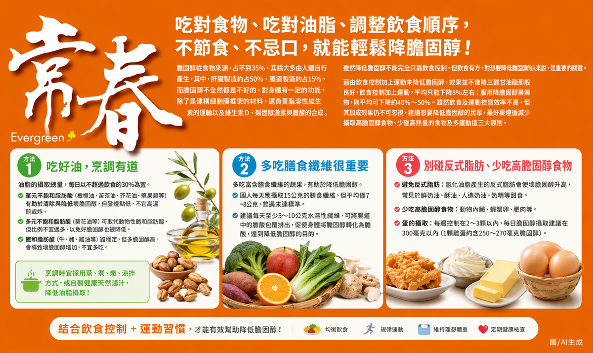 吃對食物、吃對油脂、調整飲食順序,不節食、不忌口,就能輕鬆降膽固醇!雖然降低膽固醇不能完全只靠飲食控制,但飲食有方,對想要降低膽固醇的人來說,是重要的關鍵。
