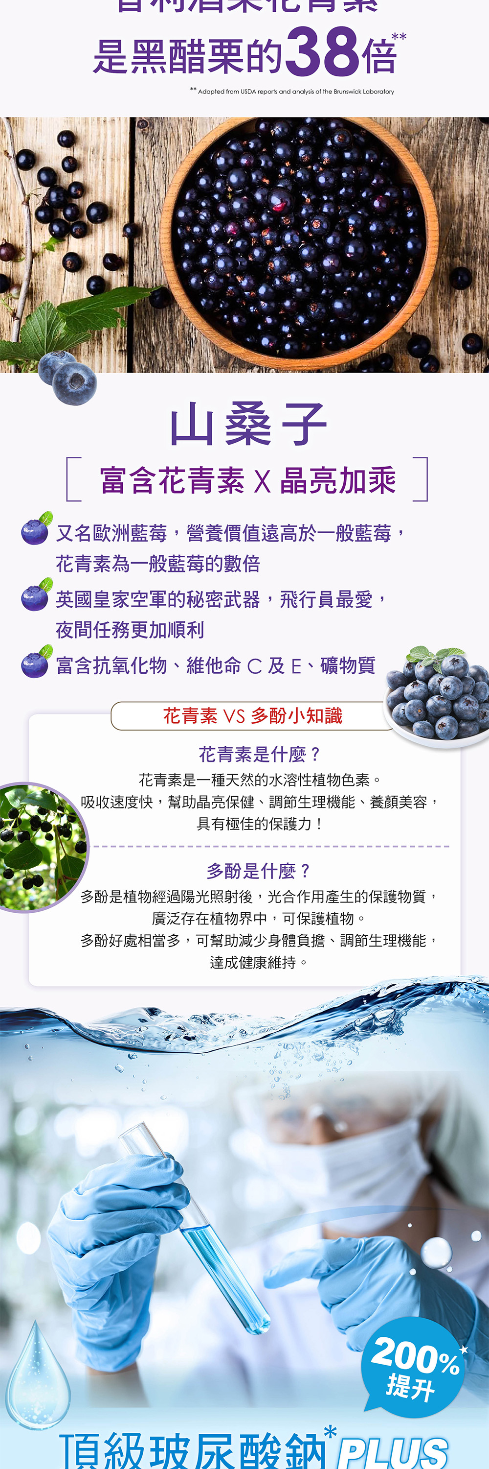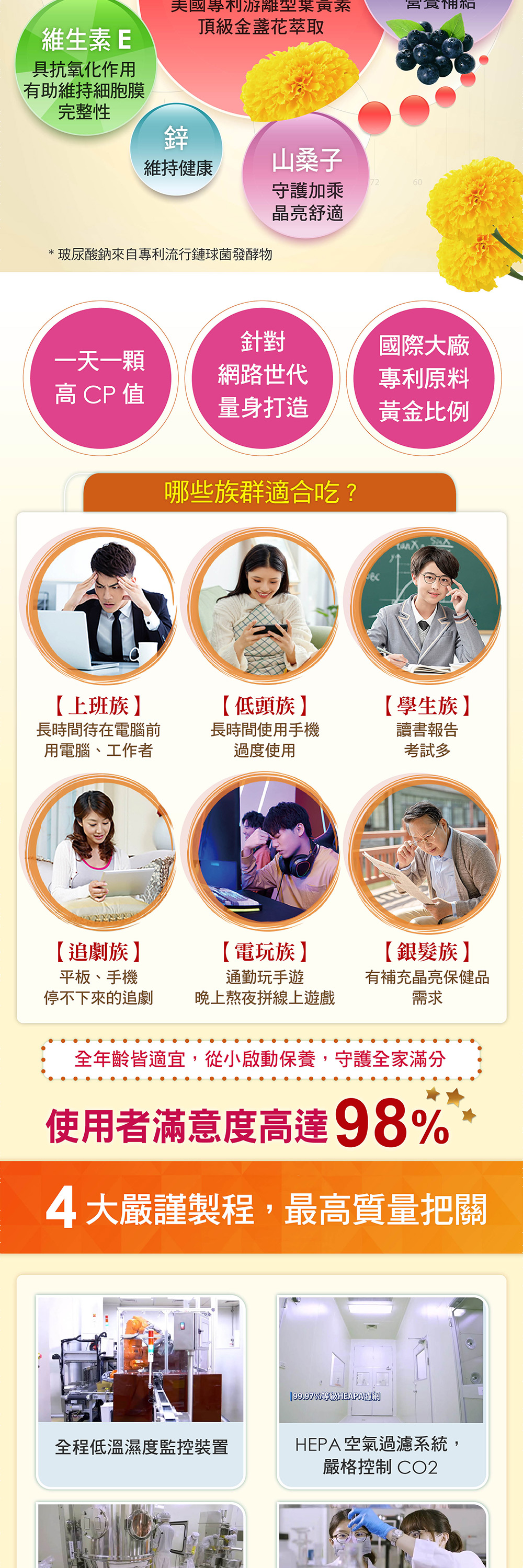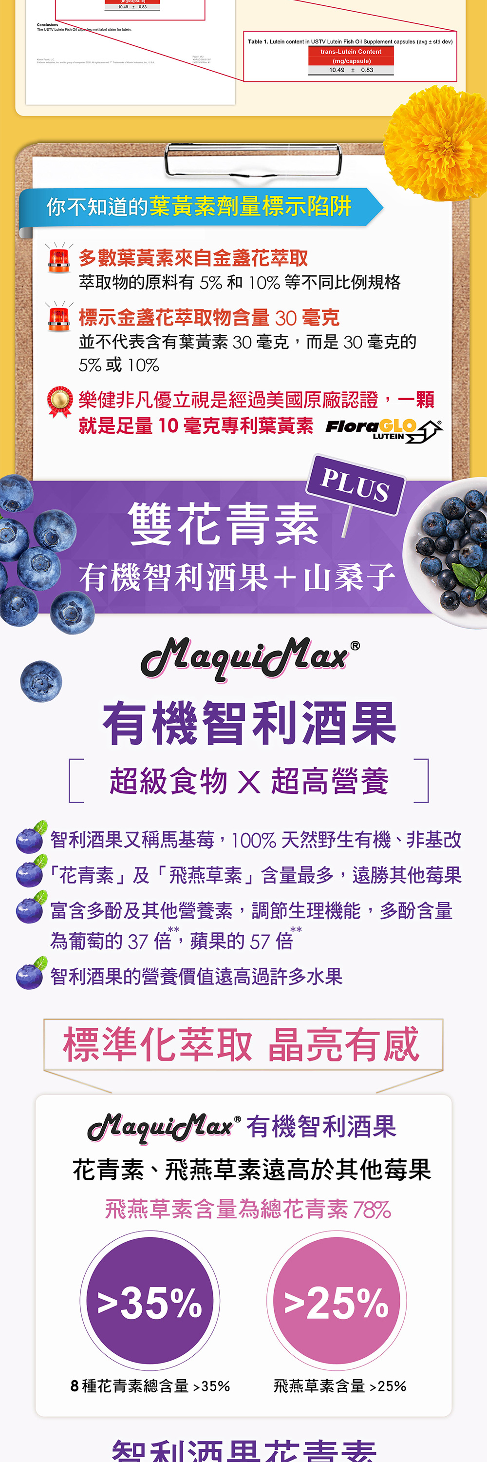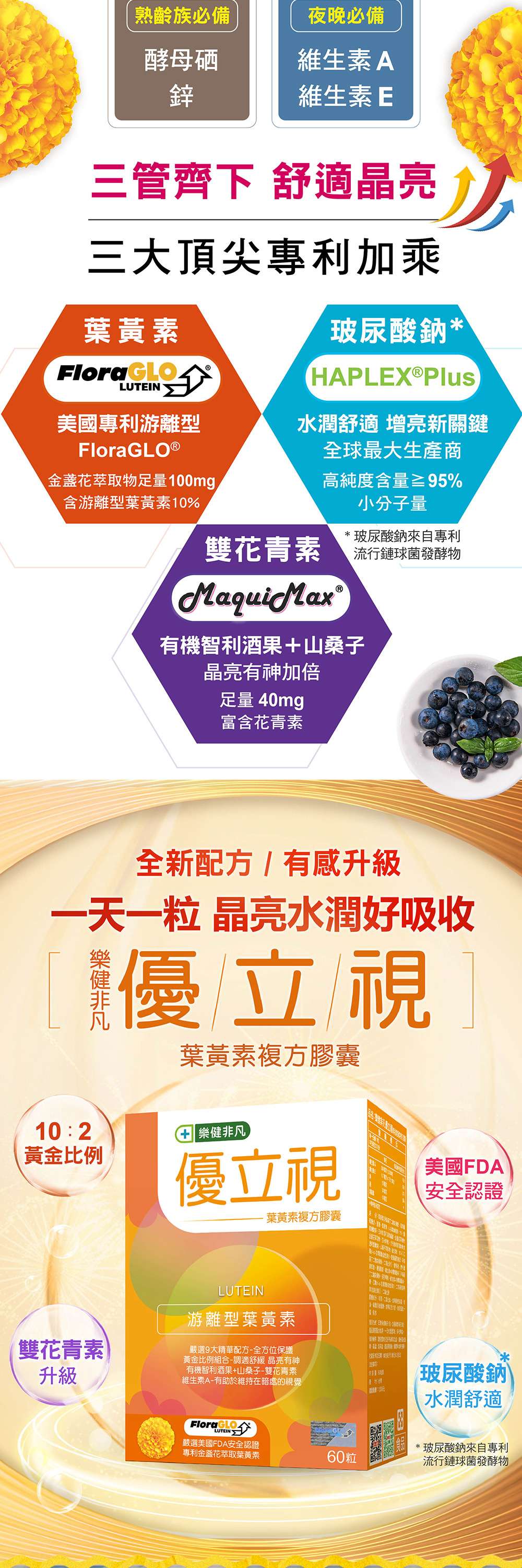 ★嚴選美國FloraGlo®專利游離型葉黃素+雙花青素+玻尿酸三管齊下