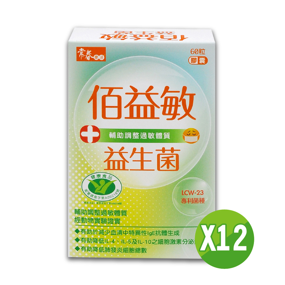 【輔助調整過敏體質,從佰益敏開始】常春樂活佰益敏益生菌(60粒/盒,12盒)