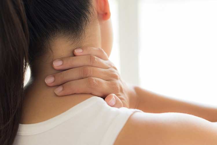 在緊繃的肩膀肌肉中可以摸到一個條束帶狀感覺,有些部位會有異常疼痛的結節,按壓時會產生傳動到其他部位的疼痛,稱為「肌筋膜疼痛症」,嚴重者甚至會造成落枕,早上起來後發現頸肩疼痛鎖住無法轉動。