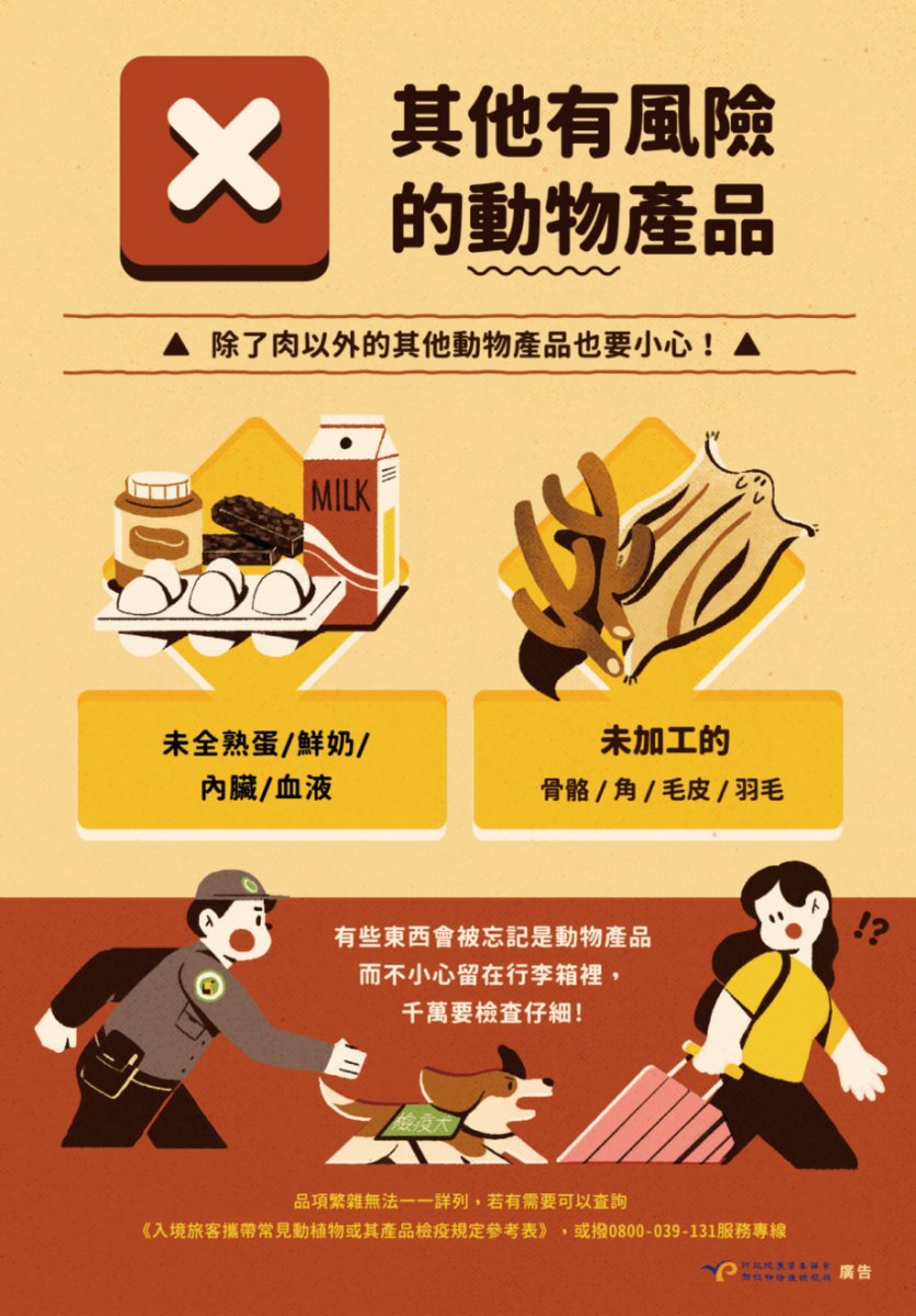 因此,防檢局特別在年前提醒國人「出國必看不買清單」總複習,以防堵非洲豬瘟等海外惡性動物傳染病入侵,也避免旅客違規攜帶檢疫物入境致遭處高額罰鍰事發生。