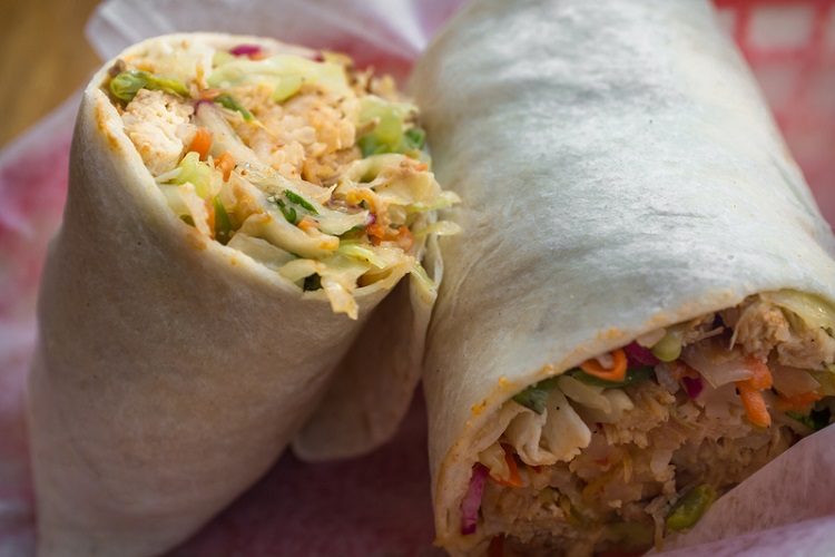 一份潤餅通常都會用到兩張餅皮,但可別小看餅皮的熱量,兩張餅皮的熱量就已相當於1/3碗的白飯,如果要再吃其它類主食類食物就要減少,為了增加膳食纖維的攝取,餅皮建議可選擇全麥餅皮;而內餡的紅糟肉其製作過程需經過油炸,會夾帶許多油脂,在加上花生粉也屬於油脂類,一不小心就會吃下過多的油脂;建議紅糟肉可改選用汆燙過的雞絲或是炒豆干絲替代,花生粉則是建議一份潤餅配一湯匙即可。