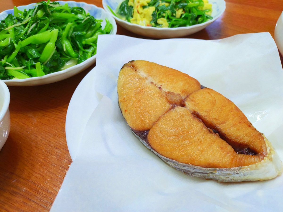 像是橄欖油煎鮭魚+甜椒櫛瓜炒黑木耳+五穀飯