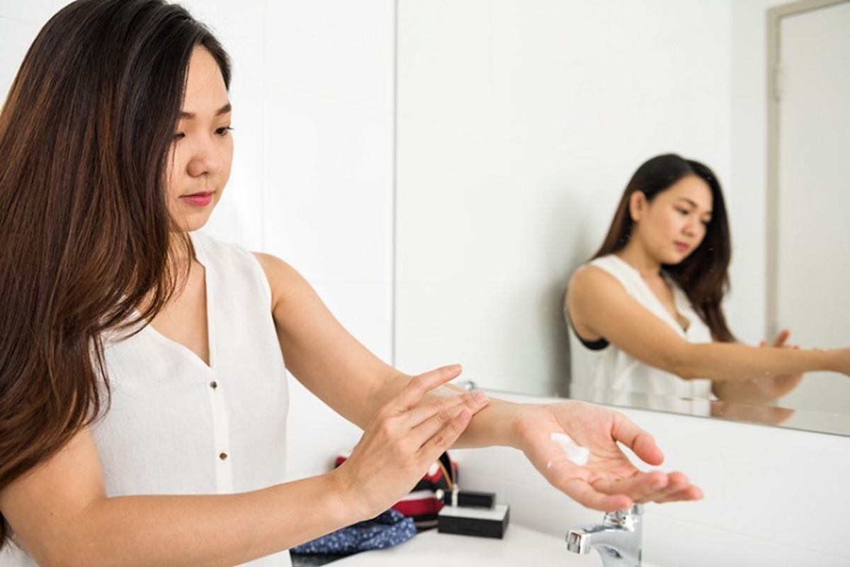 塗乳液或潤膚膏最好在皮膚稍微濕潤時進行,這樣不但比較好推開,也能幫助鎖住水分。冬天使用質地較厚的產品時,可以先在雙手掌心搓熱再塗抹,減少冰涼的不適感。