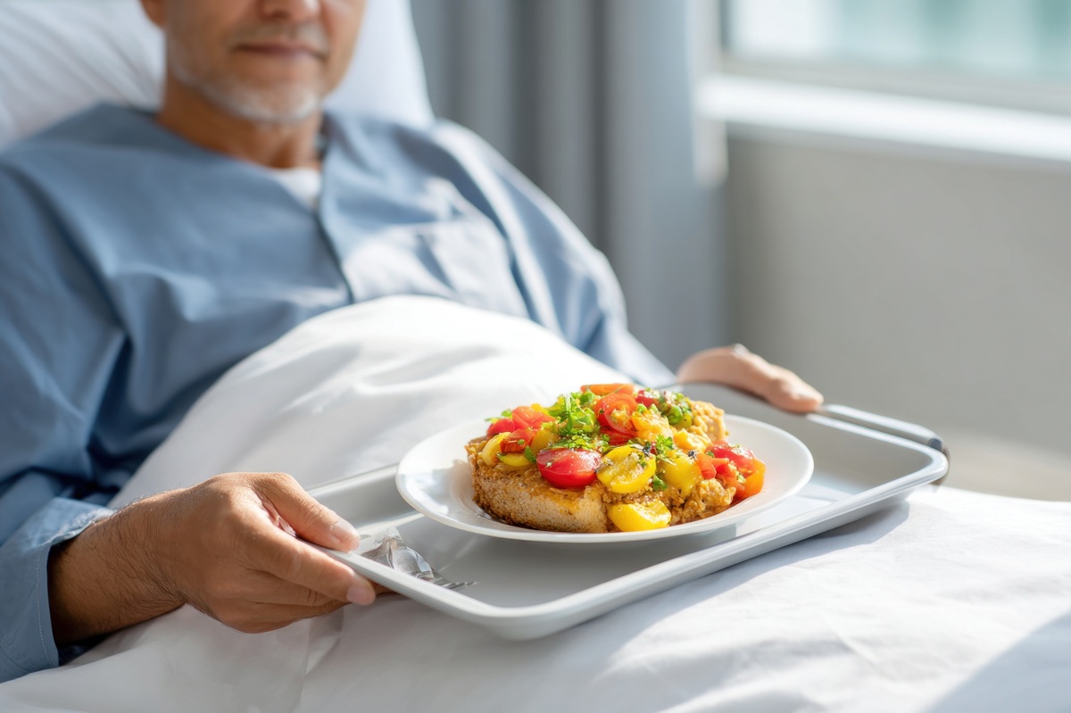 醫院團膳遠較在學校、公司、工廠裡複雜,病人的年齡、信仰、品味、病況等,差異甚大,成分、質地、份量皆須個別處理,廚房配膳時,廚師係依每一床位的需求,個別挑選菜樣,難度可想而知。