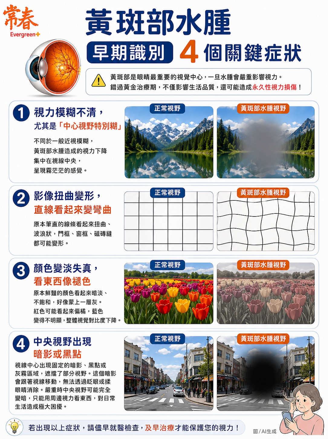 黃斑部是眼睛最重要的視覺中心,一旦水腫會嚴重影響視力。錯過黃金治療期,不僅影響生活品質,還可能造成永久性視力損傷。對此,眼科羅英源總院長帶你認識黃斑部水腫的4大症狀,讓你能及早發現、及早處理!